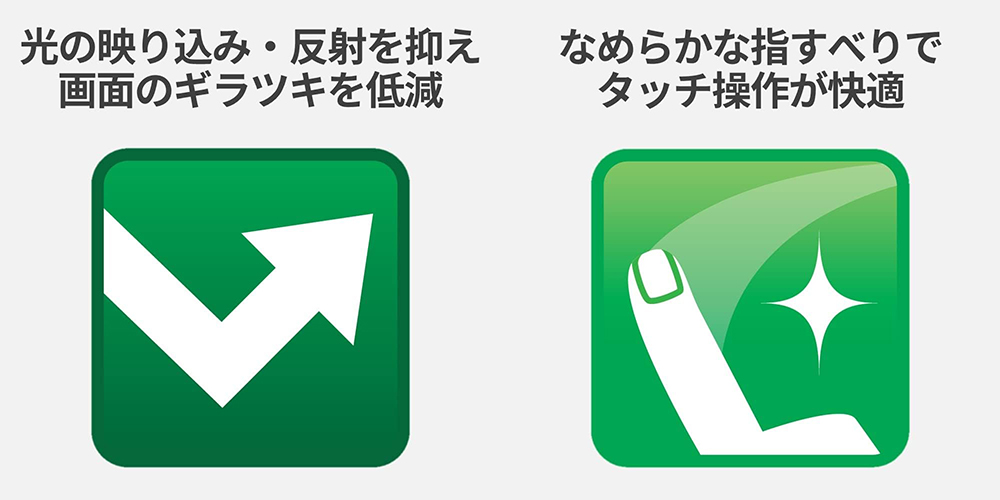 (画像はBUFFALO公式ページより)小学生は、画面に照明や外光が映り込むと、見づらさを避けるために顔を寄せたり、端末を傾けすぎたりしがちです。見えにくさが続くと、学習内容よりも「見づらい」「触りにくい」が先に気になってしまいます。 BSIPD22109FTは、反射防止仕様でギラつきを抑え、特殊フッ素コーティングで指すべりをなめらかにし、3分割剥離シートで貼りやすく作られています。低学年には、書くためのフィルムより、見やすく使い始められるフィルムの方が合います(※8)。