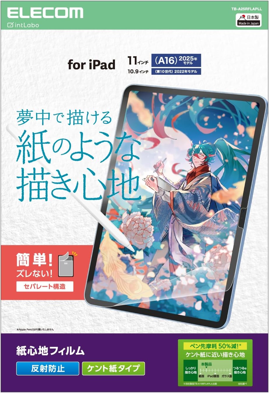 (画像はエレコム公式ページより)中学生、とくに中2~3になると、タブレットは「見る」だけの道具では足りません。書き込みを止めないためには、見やすさだけでなく、ペンが滑りすぎず、書いた感覚が返ってくることが重要です。 TB-A25RFLAPLLは、反射防止タイプの紙心地フィルムで、ケント紙に鉛筆で描いたような描き心地をうたっています。指紋防止、貼り直し可能、ハーフカットで貼り付けしやすい構造を備え、ペン先の摩耗を50%低減するとしています。見やすさに加えて、書く学習を止めにくいのが、このフィルムの良さです(※10)。
